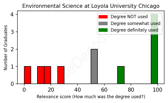 First, some facts. Of the Environmental Science graduates from Loyola University Chicago we've analyzed , here's how many have used (or NOT used) their degree in their career:
