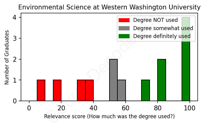 First, some facts. Of the Environmental Science graduates from Western Washington University we've analyzed , here's how many have used (or NOT used) their degree in their career: