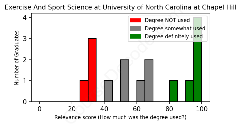 First, some facts. Of the Exercise And Sport Science graduates from University of North Carolina at Chapel Hill we've analyzed , here's how many have used (or NOT used) their degree in their career: