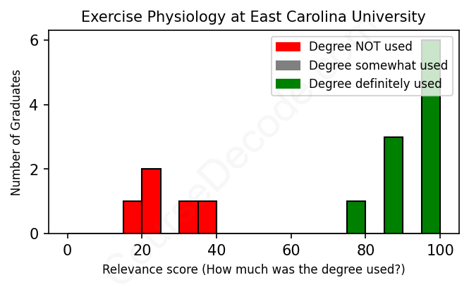 First, some facts. Of the Exercise Physiology graduates from East Carolina University we've analyzed , here's how many have used (or NOT used) their degree in their career: