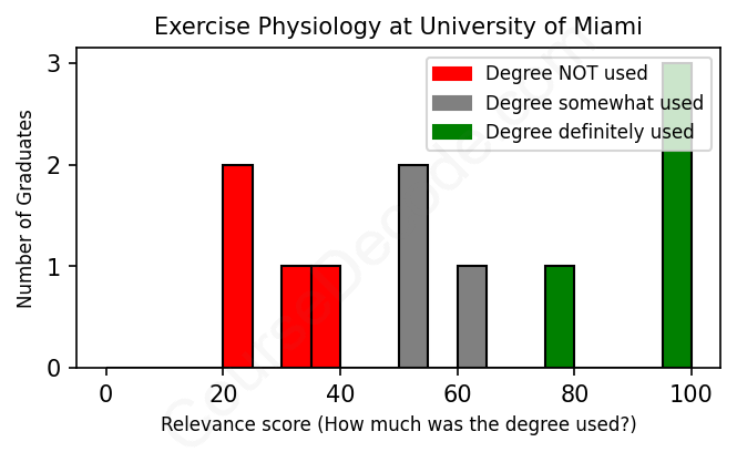First, some facts. Of the Exercise Physiology graduates from University of Miami we've analyzed , here's how many have used (or NOT used) their degree in their career: