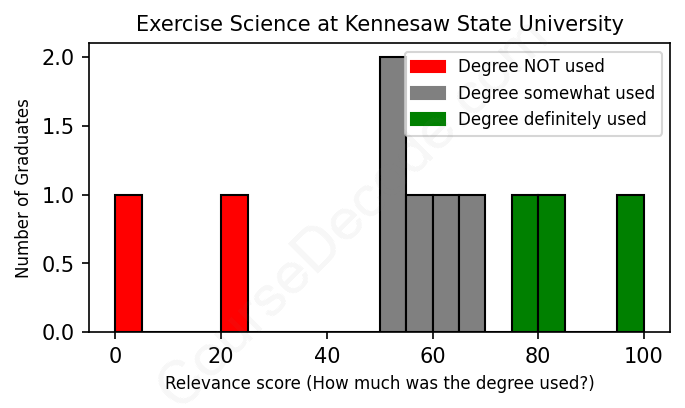 First, some facts. Of the Exercise Science graduates from Kennesaw State University we've analyzed , here's how many have used (or NOT used) their degree in their career: