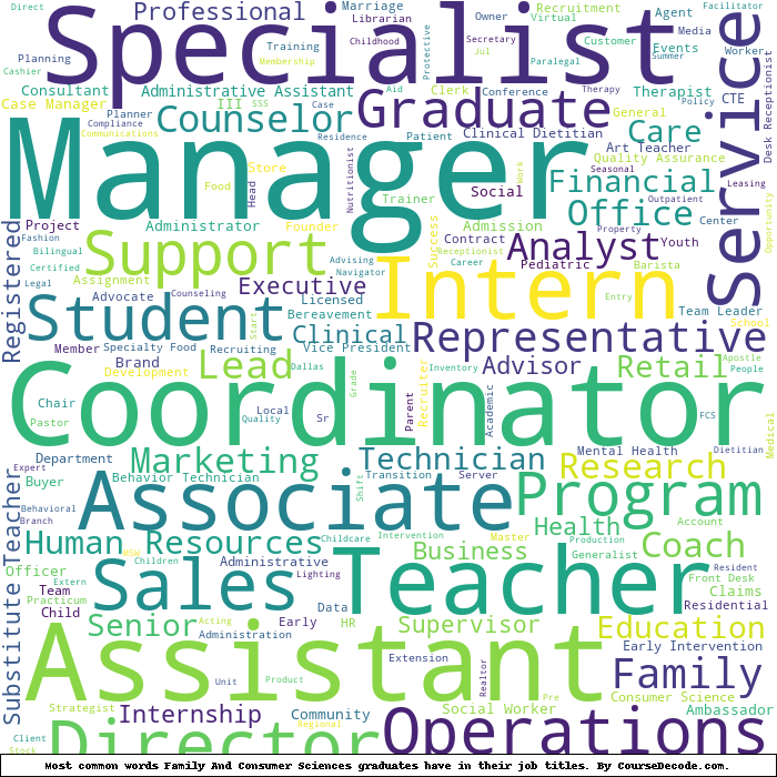Here is a visual representation of the most common words in job titles for Family And Consumer Sciences graduates: