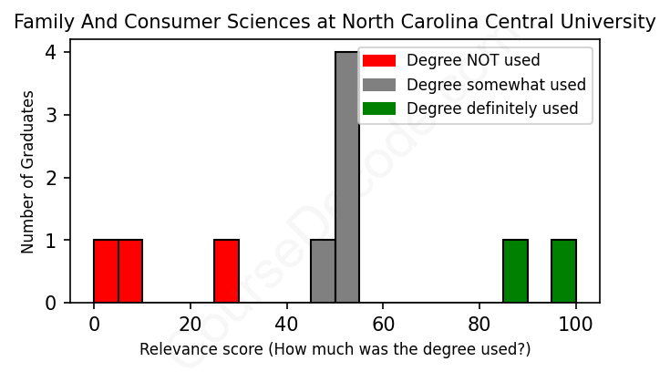First, some facts. Of the Family And Consumer Sciences graduates from North Carolina Central University we've analyzed , here's how many have used (or NOT used) their degree in their career:
