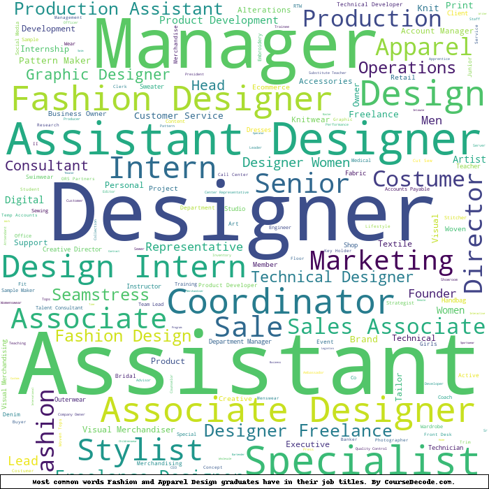 Here is a visual representation of the most common words in job titles for Fashion and Apparel Design graduates: