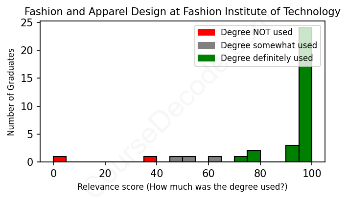 First, some facts. Of the Fashion and Apparel Design graduates from Fashion Institute of Technology we've analyzed , here's how many have used (or NOT used) their degree in their career: