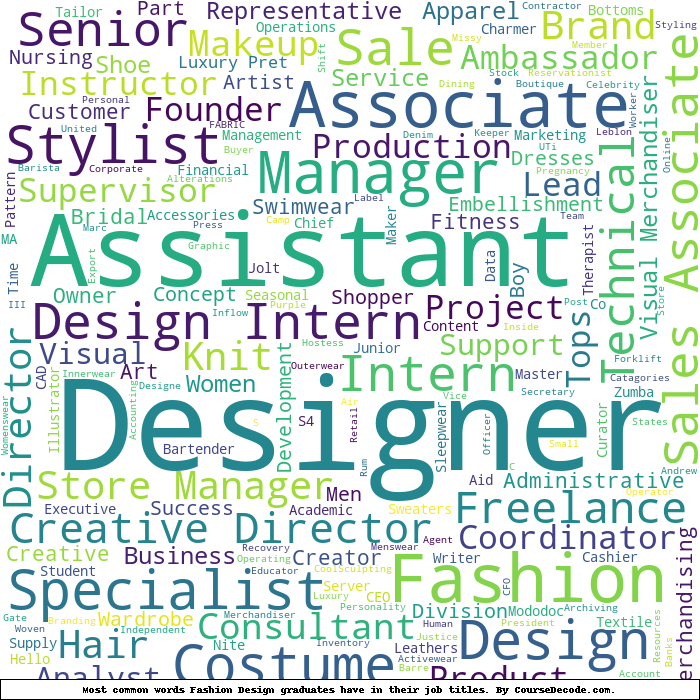 Here is a visual representation of the most common words in job titles for Fashion Design graduates: