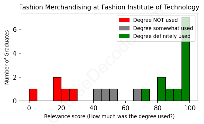 First, some facts. Of the Fashion Merchandising graduates from Fashion Institute of Technology we've analyzed , here's how many have used (or NOT used) their degree in their career:
