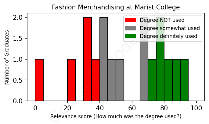 First, some facts. Of the Fashion Merchandising graduates from Marist College we've analyzed , here's how many have used (or NOT used) their degree in their career: