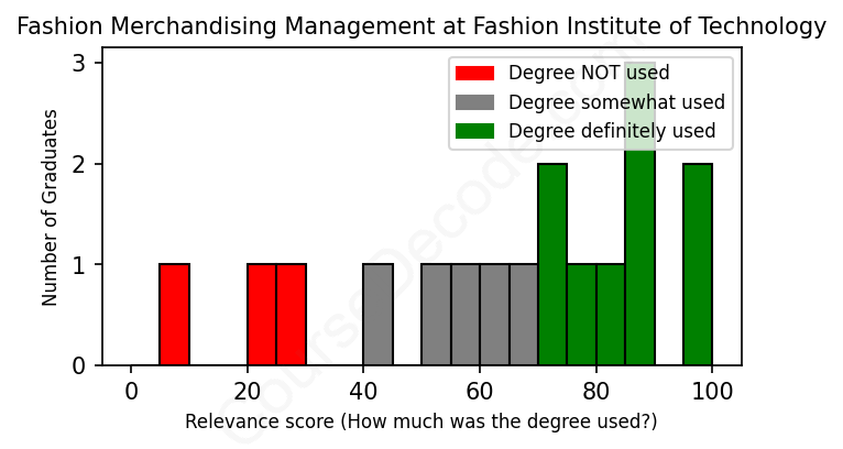 First, some facts. Of the Fashion Merchandising Management graduates from Fashion Institute of Technology we've analyzed , here's how many have used (or NOT used) their degree in their career: