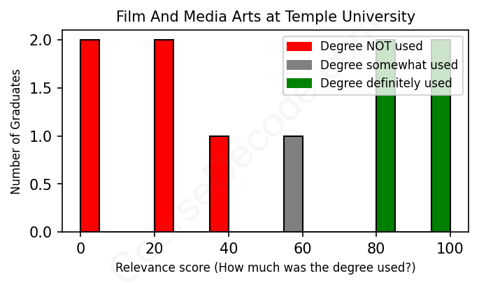 First, some facts. Of the Film And Media Arts graduates from Temple University we've analyzed , here's how many have used (or NOT used) their degree in their career: