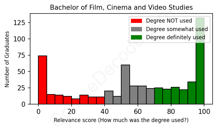First, some facts. Of the Film, Cinema and Video Studies graduates we've analyzed , here's how many have used (or NOT used) their degree in their career: