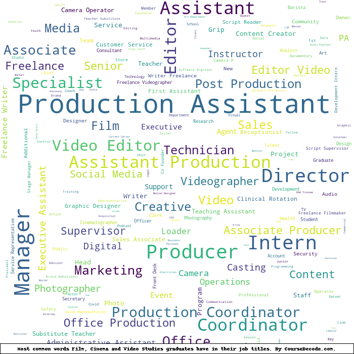 Here is a visual representation of the most common words in job titles for Film, Cinema and Video Studies graduates: