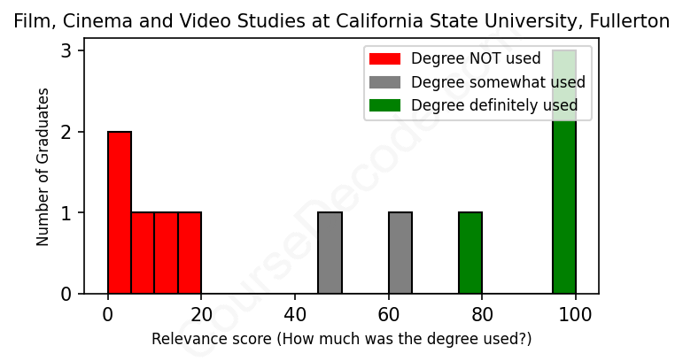 First, some facts. Of the Film, Cinema and Video Studies graduates from California State University, Fullerton we've analyzed , here's how many have used (or NOT used) their degree in their career:
