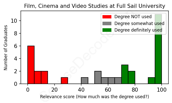First, some facts. Of the Film, Cinema and Video Studies graduates from Full Sail University we've analyzed , here's how many have used (or NOT used) their degree in their career: