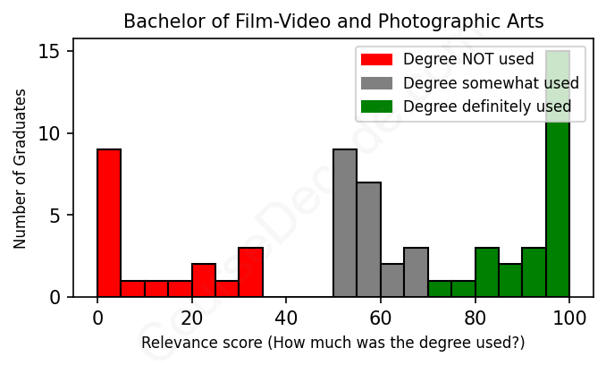 First, some facts. Of the Film-Video and Photographic Arts graduates we've analyzed , here's how many have used (or NOT used) their degree in their career: