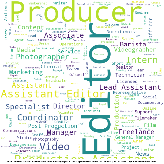 Here is a visual representation of the most common words in job titles for Film-Video and Photographic Arts graduates: