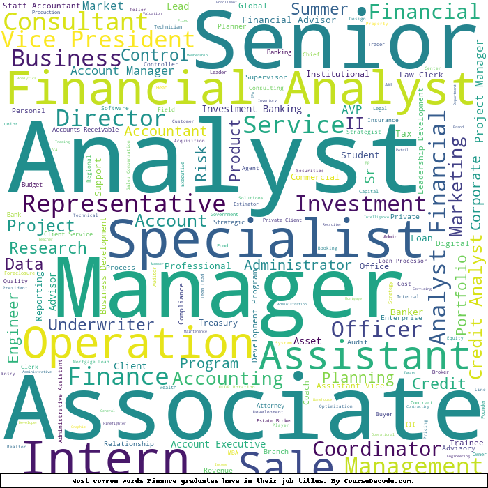 Here is a visual representation of the most common words in job titles for Finance graduates:
