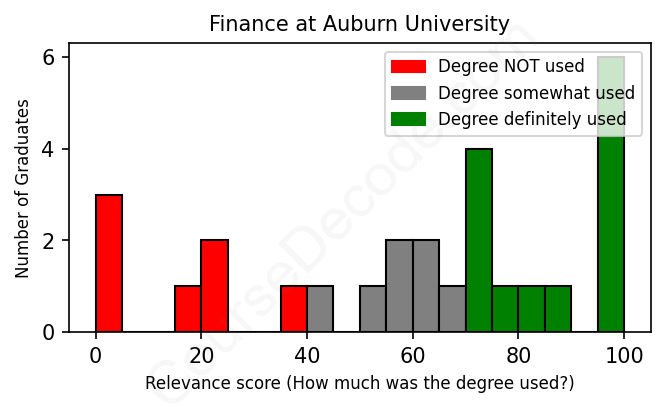 First, some facts. Of the Finance graduates from Auburn University we've analyzed , here's how many have used (or NOT used) their degree in their career: