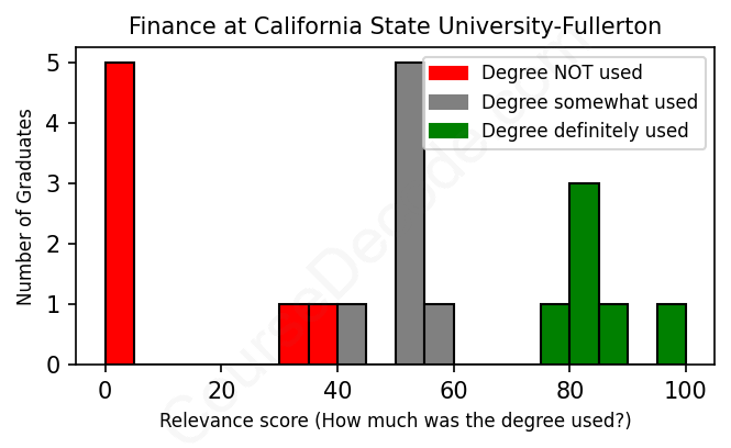 First, some facts. Of the Finance graduates from California State University, Fullerton we've analyzed , here's how many have used (or NOT used) their degree in their career: