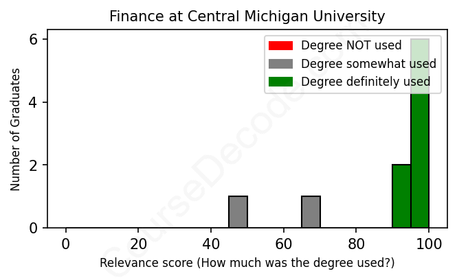 First, some facts. Of the Finance graduates from Central Michigan University we've analyzed , here's how many have used (or NOT used) their degree in their career: