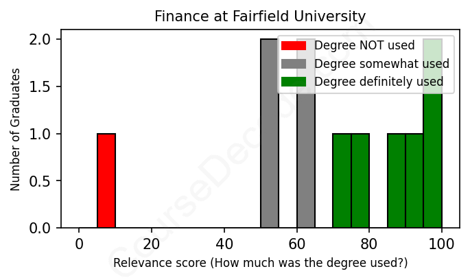 First, some facts. Of the Finance graduates from Fairfield University we've analyzed , here's how many have used (or NOT used) their degree in their career: