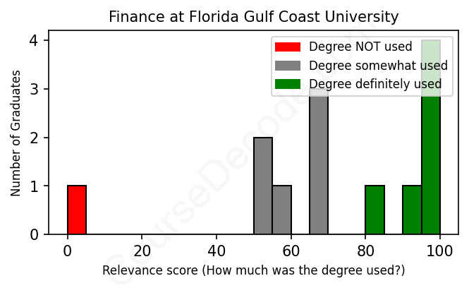 First, some facts. Of the Finance graduates from Florida Gulf Coast University we've analyzed , here's how many have used (or NOT used) their degree in their career: