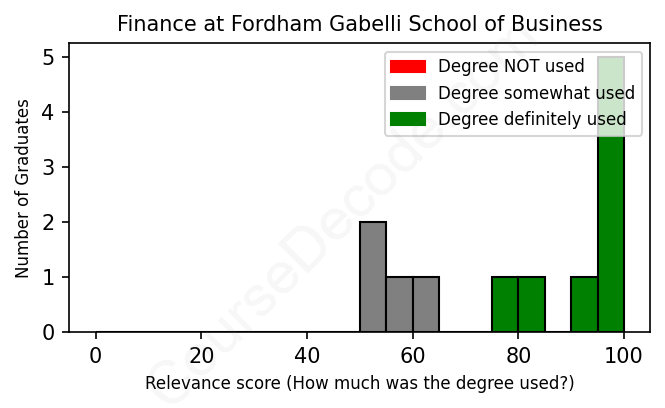 First, some facts. Of the Finance graduates from Fordham Gabelli School of Business we've analyzed , here's how many have used (or NOT used) their degree in their career: