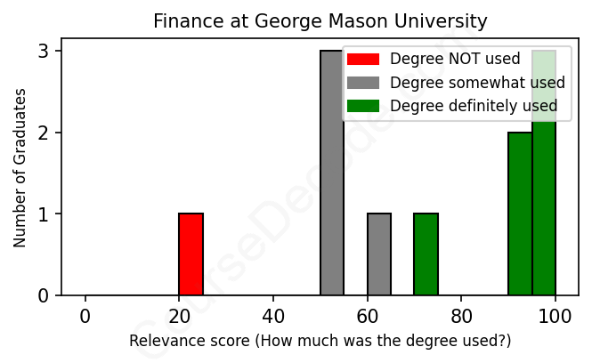 First, some facts. Of the Finance graduates from George Mason University we've analyzed , here's how many have used (or NOT used) their degree in their career: