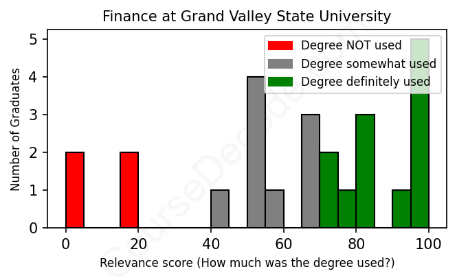 First, some facts. Of the Finance graduates from Grand Valley State University we've analyzed , here's how many have used (or NOT used) their degree in their career: