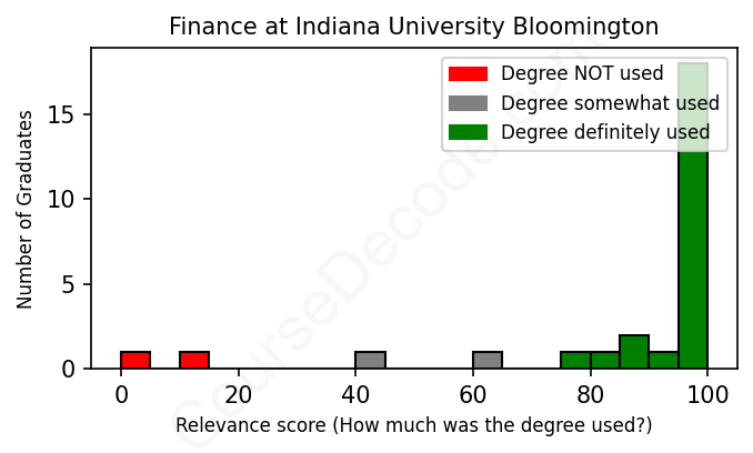 First, some facts. Of the Finance graduates from Indiana University Bloomington we've analyzed , here's how many have used (or NOT used) their degree in their career:
