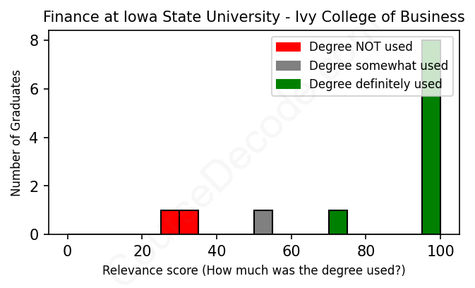First, some facts. Of the Finance graduates from Iowa State University - Ivy College of Business we've analyzed , here's how many have used (or NOT used) their degree in their career: