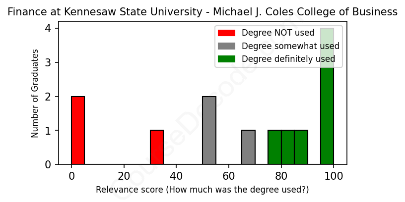 First, some facts. Of the Finance graduates from Kennesaw State University - Michael J. Coles College of Business we've analyzed , here's how many have used (or NOT used) their degree in their career: