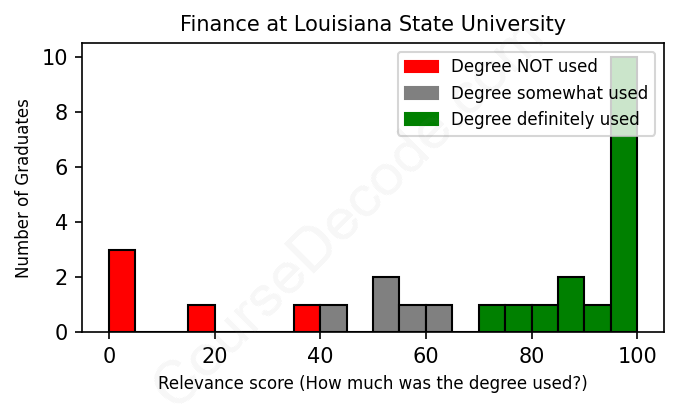 First, some facts. Of the Finance graduates from Louisiana State University we've analyzed , here's how many have used (or NOT used) their degree in their career: