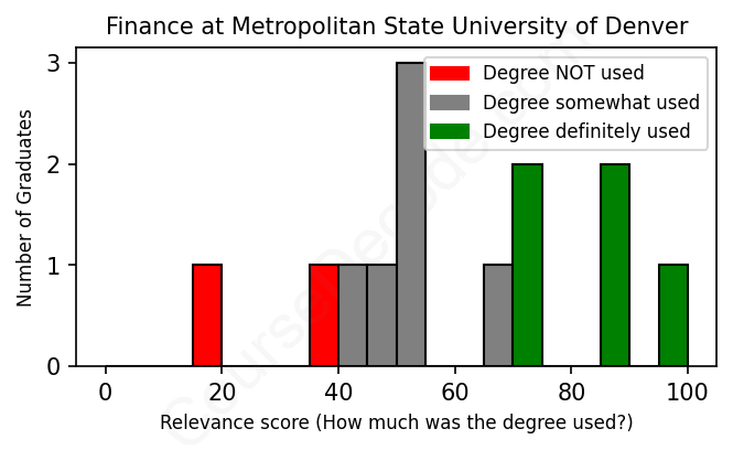 First, some facts. Of the Finance graduates from Metropolitan State University of Denver we've analyzed , here's how many have used (or NOT used) their degree in their career: