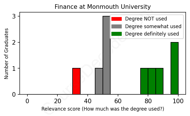First, some facts. Of the Finance graduates from Monmouth University we've analyzed , here's how many have used (or NOT used) their degree in their career: