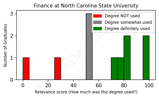 First, some facts. Of the Finance graduates from North Carolina State University we've analyzed , here's how many have used (or NOT used) their degree in their career: