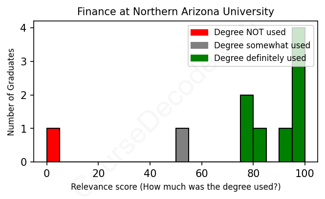 First, some facts. Of the Finance graduates from Northern Arizona University we've analyzed , here's how many have used (or NOT used) their degree in their career: