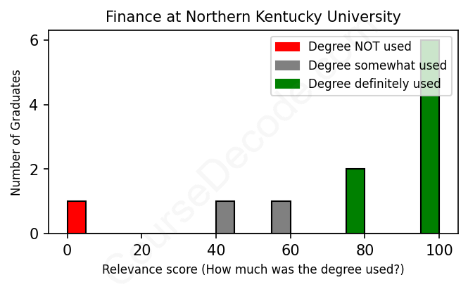 First, some facts. Of the Finance graduates from Northern Kentucky University we've analyzed , here's how many have used (or NOT used) their degree in their career: