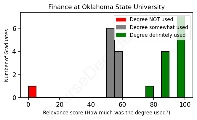 First, some facts. Of the Finance graduates from Oklahoma State University we've analyzed , here's how many have used (or NOT used) their degree in their career: