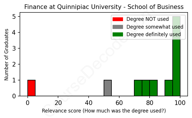First, some facts. Of the Finance graduates from Quinnipiac University - School of Business we've analyzed , here's how many have used (or NOT used) their degree in their career: