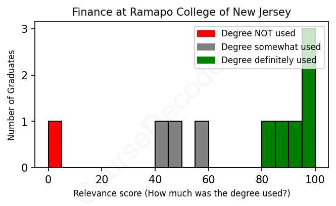 First, some facts. Of the Finance graduates from Ramapo College of New Jersey we've analyzed , here's how many have used (or NOT used) their degree in their career:
