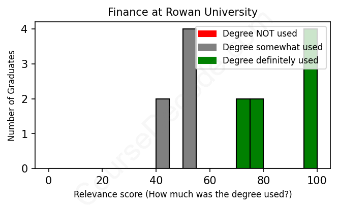 First, some facts. Of the Finance graduates from Rowan University we've analyzed , here's how many have used (or NOT used) their degree in their career: