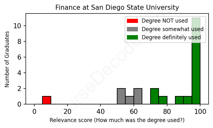 First, some facts. Of the Finance graduates from San Diego State University we've analyzed , here's how many have used (or NOT used) their degree in their career: