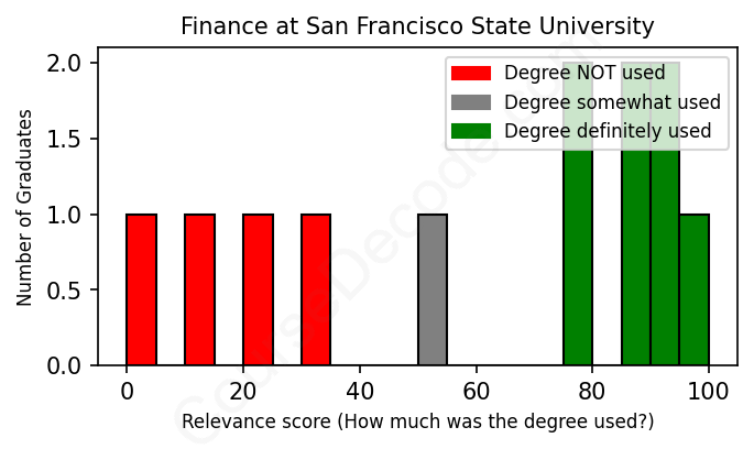 First, some facts. Of the Finance graduates from San Francisco State University we've analyzed , here's how many have used (or NOT used) their degree in their career: