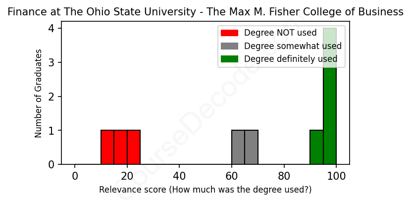 First, some facts. Of the Finance graduates from The Ohio State University - The Max M. Fisher College of Business we've analyzed , here's how many have used (or NOT used) their degree in their career: