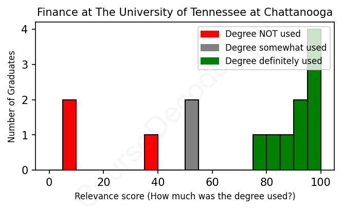 First, some facts. Of the Finance graduates from The University of Tennessee at Chattanooga we've analyzed , here's how many have used (or NOT used) their degree in their career: