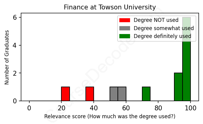 First, some facts. Of the Finance graduates from Towson University we've analyzed , here's how many have used (or NOT used) their degree in their career: