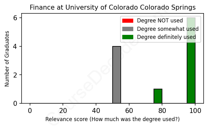 First, some facts. Of the Finance graduates from University of Colorado Colorado Springs we've analyzed , here's how many have used (or NOT used) their degree in their career:
