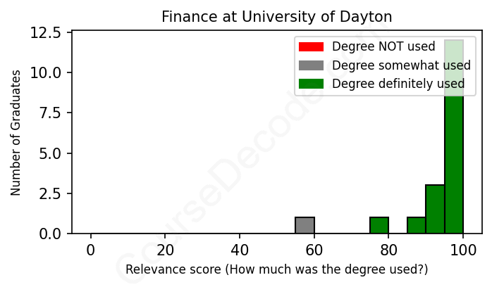 First, some facts. Of the Finance graduates from University of Dayton we've analyzed , here's how many have used (or NOT used) their degree in their career: